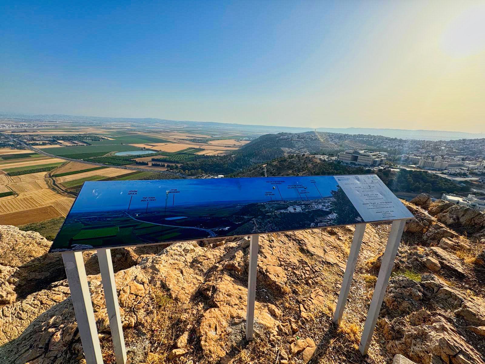 Desde este mismo lugar también podremos apreciar una vista impresionante del valle de Meguido, lugar donde, según la profecía del libro de Apocalipsis, tendrá lugar la batalla de Armagedón.