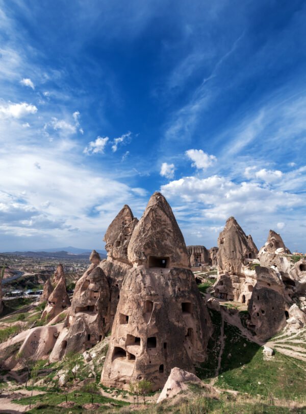 Recorrido por los valles y chimeneas de hadas, iglesias en roca, talleres de joyería y alfombras. Opción de paseo en globo o Noche Turca.